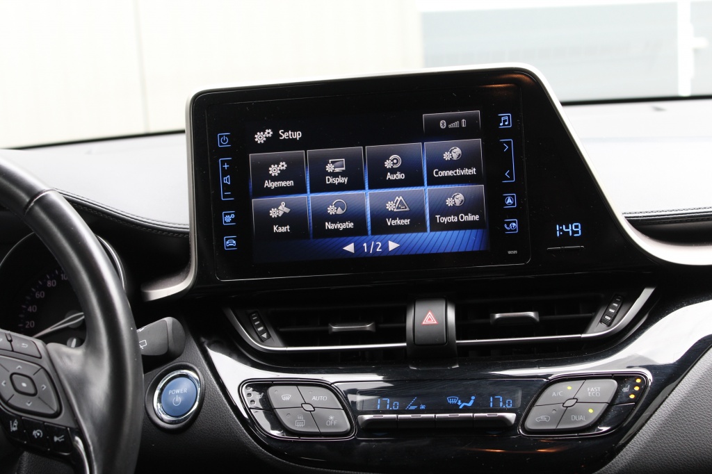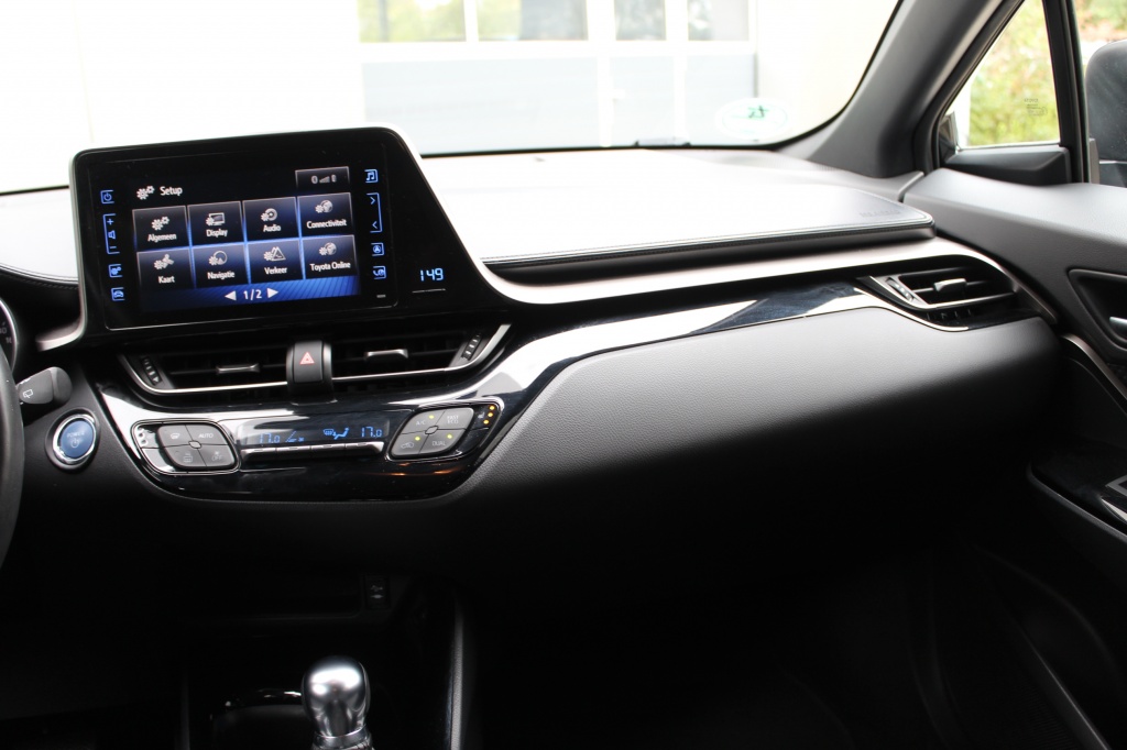 Deze betrouwbare Toyota C-HR is sportief en zuinig. De 1.8 Hybride aandrijving laat de auto snel accelereren en is zuinig met brandstof. De automaat schakelt zeer comfortabel. De hoge zit geeft een goed overzicht en maakt in- en uitstappen gemakkelijk. De CH-R is uitgerust met Privacy Glass(getinte achterruiten), 18 lichtmetalen velgen, dak spoiler en zwarte mica metallic lak waardoor de auto er extra stijlvol en sportief uit ziet. Het Toyota safety sense pakket geeft extra veiligheid met; pre-crash, radar cruise-control met file assistent, automatisch groot licht, rijbaanherkenning met tegenstuur functie en dodenhoek waarschuwing. Parkeren is gemakkelijk met achteruitrij camera, parkeersensoren met geluid en beeld detectie, automatisch inparkeren en rear traffic control, die verkeer achter de auto aan ziet komen voordat u het zelf kunt zien. Ook beschikt deze CH-R over het winterpakket wat inhoud dat deze geleverd is met stuurwiel en stoelverwarming. Door de dual climate control zit je ook het hele jaar lekker warm of lekker koel in de auto als bestuurder maar ook als passagier.