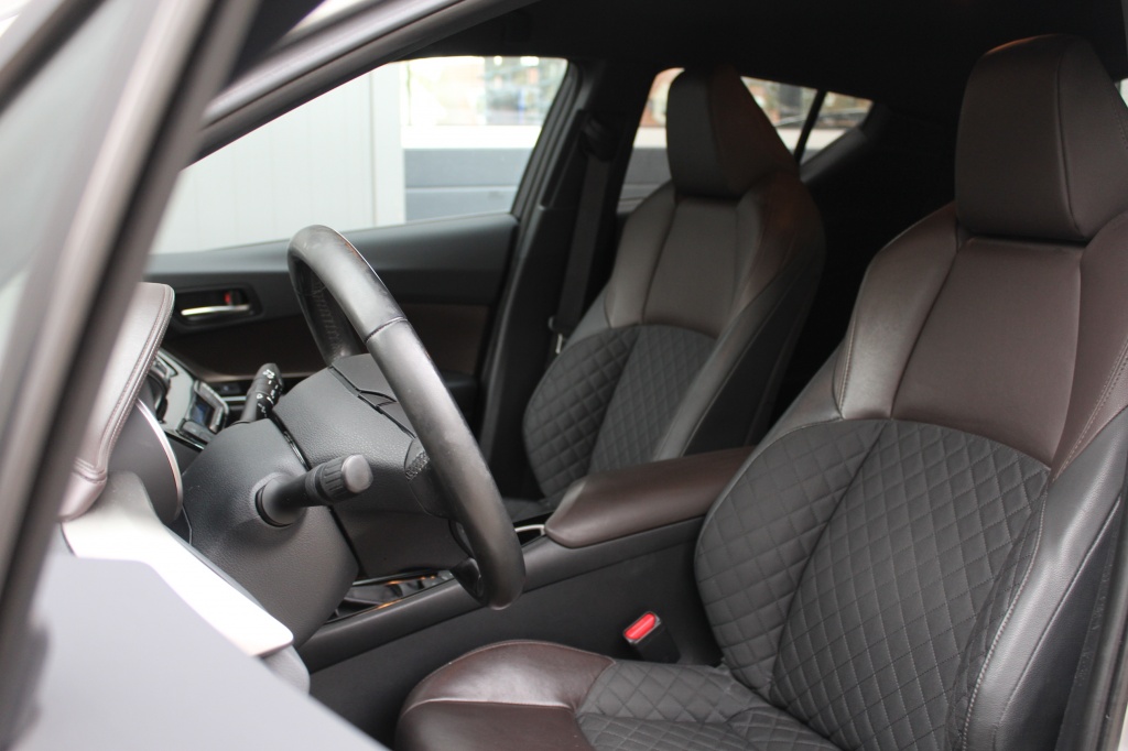 Deze betrouwbare Toyota C-HR is sportief en zuinig. De 1.8 Hybride aandrijving laat de auto snel accelereren en is zuinig met brandstof. De automaat schakelt zeer comfortabel. De hoge zit geeft een goed overzicht en maakt in- en uitstappen gemakkelijk. De CH-R is uitgerust met Privacy Glass(getinte achterruiten), 18 lichtmetalen velgen, dak spoiler en metallic lak waardoor de auto er extra stijlvol en sportief uit ziet. Het Toyota safety sense pakket geeft extra veiligheid met; pre-crash, radar cruise-control met file assistent, automatisch groot licht, rijbaanherkenning met tegenstuur functie en dodenhoek waarschuwing. Parkeren is gemakkelijk met achteruitrij camera, parkeersensoren met geluid en beeld detectie, automatisch inparkeren en rear traffic control, die verkeer achter de auto aan ziet komen voordat u het zelf kunt zien. Ook beschikt deze CH-R over stoelverwarming en dual climate control zo zit je ook het hele jaar lekker warm of lekker koel in de auto als bestuurder, maar ook als passagier.