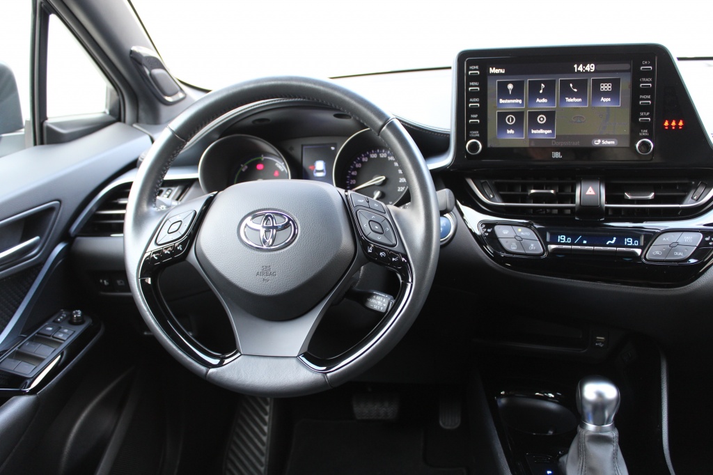 Deze betrouwbare Toyota C-HR is sportief en zuinig. De 2.0 Hybride aandrijving laat de auto snel accelereren en is zuinig met brandstof. De automaat schakelt zeer comfortabel. De hoge zit geeft een goed overzicht en maakt in- en uitstappen gemakkelijk. De CH-R is uitgerust met Privacy Glass(getinte achterruiten), 18 lichtmetalen velgen, dak spoiler en bi-tone metallic lak waardoor de auto er extra stijlvol en sportief uit ziet. Het Toyota safety sense pakket geeft extra veiligheid met; pre-crash, radar cruise-control met file assistent, automatisch groot licht, rijbaanherkenning met tegenstuur functie en dodenhoek waarschuwing. Parkeren is gemakkelijk met achteruitrij camera, parkeersensoren met geluid en beeld detectie, automatisch inparkeren en rear traffic control, die verkeer achter de auto aan ziet komen voordat u het zelf kunt zien. Ook beschikt deze CH-R over het winterpakket wat inhoud dat deze geleverd is met stuurwiel en stoelverwarming. Door de dual climate control zit je ook het hele jaar lekker warm of lekker koel in de auto als bestuurder maar ook als passagier.