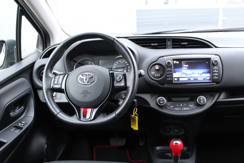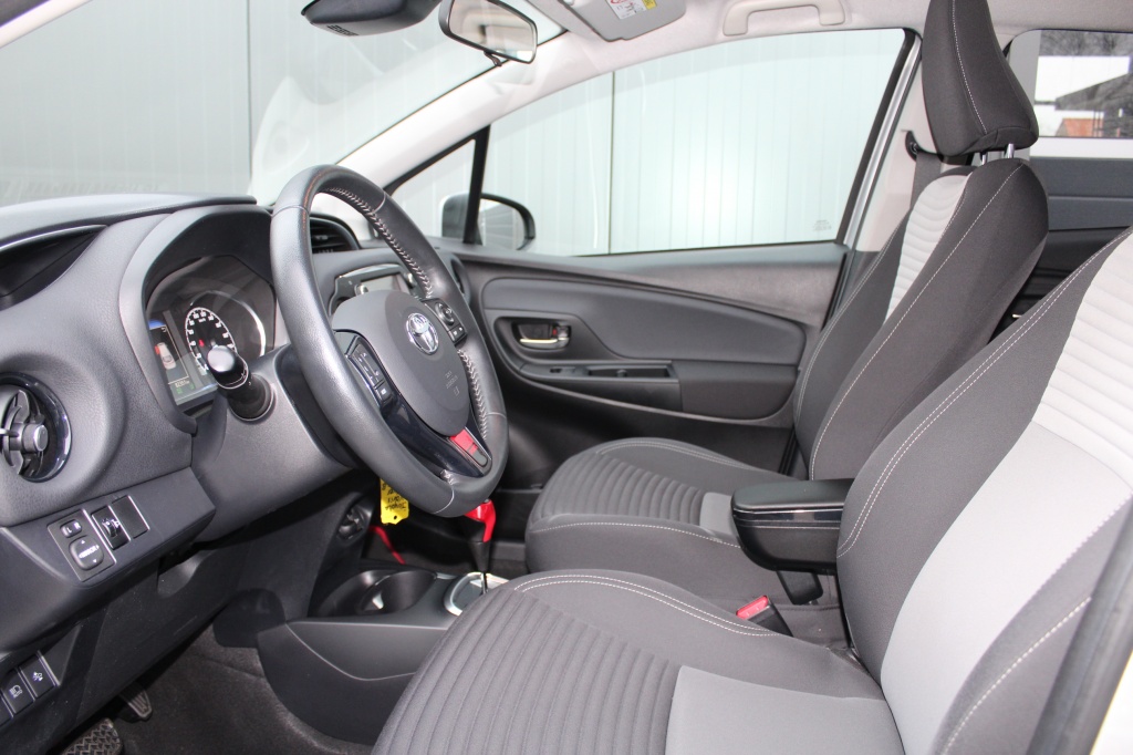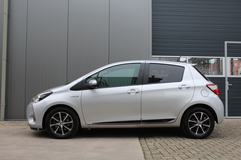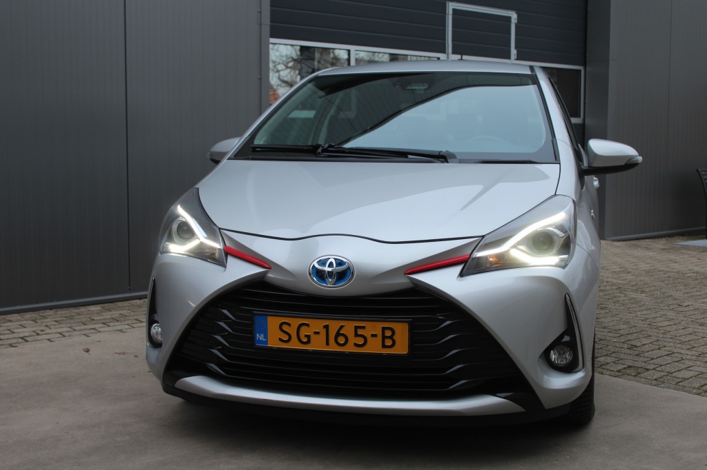 Deze betrouwbare Toyota Yaris heeft een hoge instap en is zuinig. De 1.5 hybridekracht bron is krachtig en gaat zuinig om met brandstof. De CVT automaat schakelt traploos en is zeer comfortabel. De hoge instap maakt in- en uitstappen gemakkelijk. Deze Yaris is uitgerust met een touchscreen multimedia scherm met mogelijkheden zoals handsfree bellen, Bluetooth media afspeel mogelijkheden en achteruitrijcamera (gecombineerd met parkeersensoren) .Verder heeft deze auto een nette en sportieve uitstraling door de getinte achteruiten, ledere stuurwiel en pook, LED achterlichten en de projector koplampen. De ervaring word nog eens verbeterd doordat deze auto beschikt over verwarmde buitenspiegels, in delen inklapbare achterbank, verstelbaar stuur, in hoogte verstelbare stoelen, stuurwiel bediening (audio/telefoon bediening en bediening voor scherm in teller kast), regensensor en verkeersbord herkenning.
